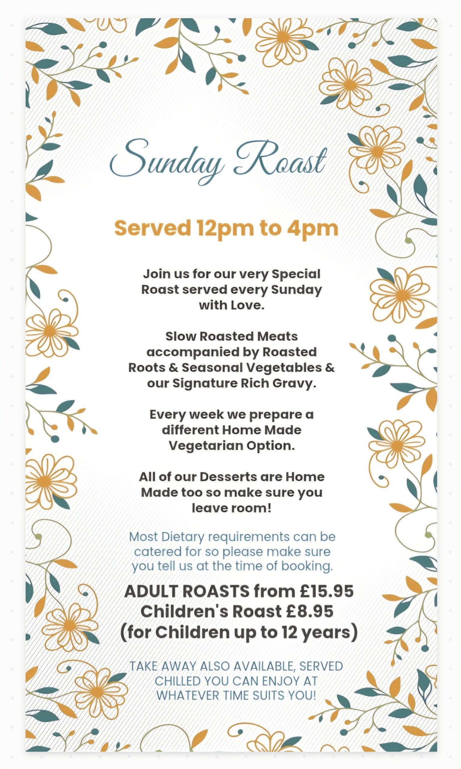 Join us for our very Special Roast served every Sunday with Love.